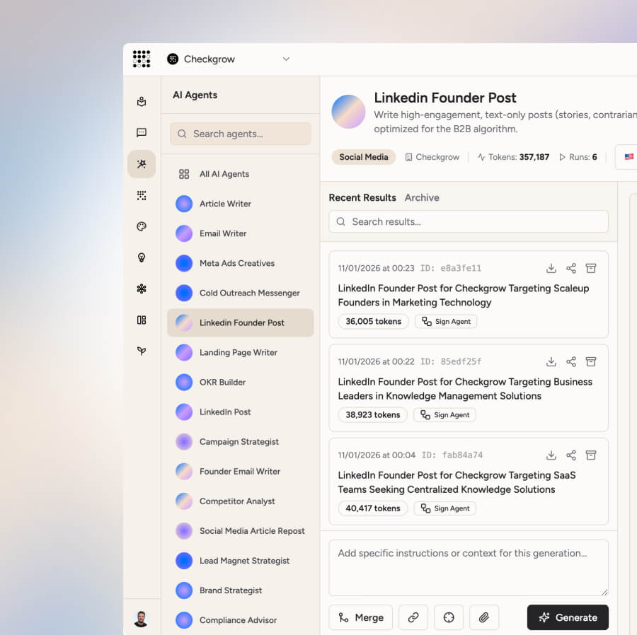 Trained on Growth Marketing expertise, our agents connect your brand data with ability to deliver outcomes at scale.